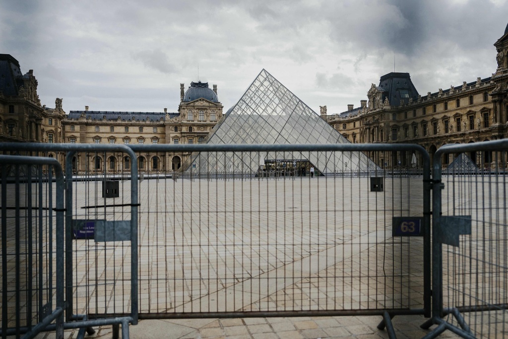 当地时间2025年10月20日,法国巴黎,卢浮宫发生盗窃案,馆内珍贵珠宝被盗,博物馆宣布将继续关闭。视觉中国 图