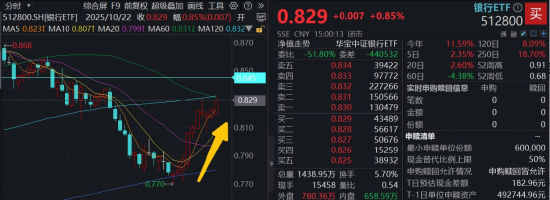 值得注意的是,顶流银行ETF(512800)近日受到资金大举涌入布局,近10日累计吸金达59.87亿元。银行ETF(512800)最新规模超207亿元,年内日均成交额超7亿元,为A股10只银行业ETF中规模最大、流动性最佳!