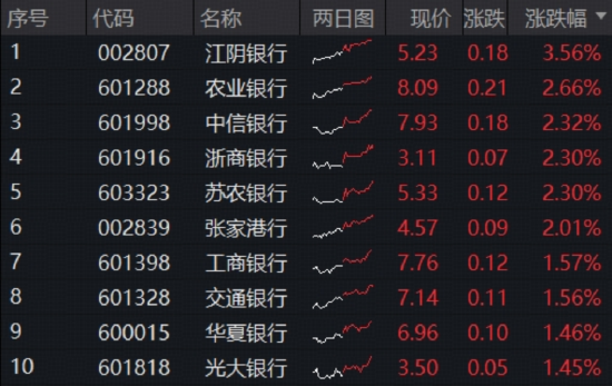 大盘缩量调整,银行表现不俗,截至收盘,A股42只银行股39涨3跌,农业银行再涨2.66%,喜提14连涨续创历史新高!此外,涨超3%,、、、涨超2%,、、、等12股涨逾1%。