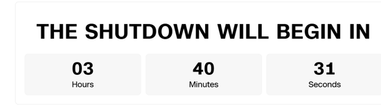 美国管理和预算办公室宣布,政府将于美国时间周二23:59 后关闭。