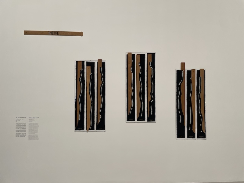 展览现场,西岸美术馆邀请小朋友们在工作坊中创作的作品《三个标准的终止计量器》(致敬杜尚1913年的原作)