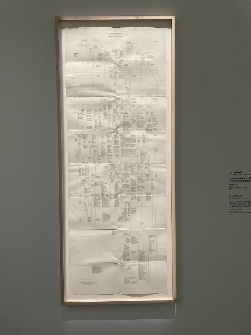 展览现场,乔治·麦素纳斯, 《激浪派及其他四维听觉、视觉、嗅觉、表皮与触觉艺术形式的历史发展图鉴(未完成)》(局部),1973年