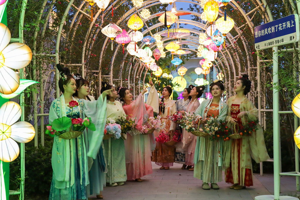 国庆假期首日,“大白兔”换上了汉服,化身“唐韵中秋”形象大使,与非遗剪纸风格的大型艺术装置《月满》展亭相映成趣,这是10月1日在上海西岸梦中心开启的游园会给市民游客带来的惊喜。
