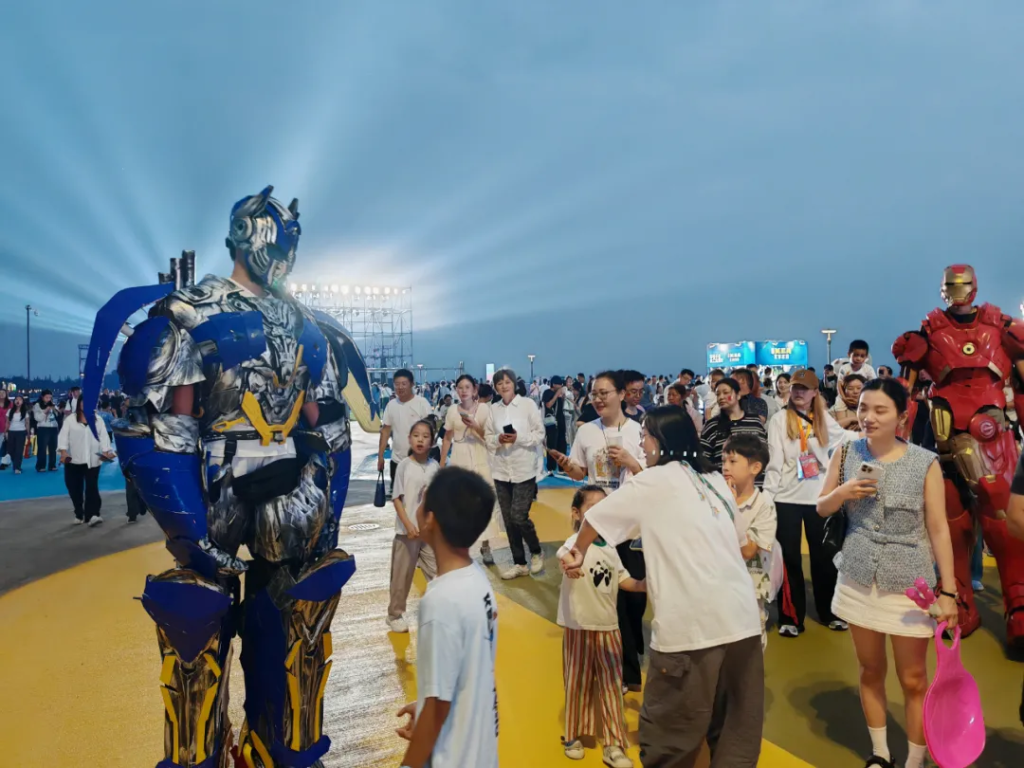 舞台表演区解锁文艺魅力与足球激情交织的独特氛围,除每天都有艺术精品、潮流乐队的表演外,10月7日的“苏超狂欢之夜”,这里作为“苏超”第二现场之一,将在直播南通队与淮安队淘汰赛的同时,为球迷带来不一样的“苏超”夜嗨主题活动。每晚不同特色的主题巡游将打造潮流新场景,千架无人机秀每晚与观众见面,10月6日中秋之夜,还将增加一次表演,让游客在光影舞动中欢度佳节。