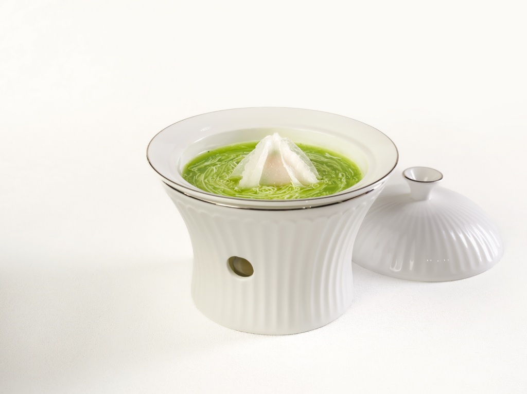 以前的桂花楼以传统淮扬菜见长,随着石强师傅的入主,其对于创新的追求也让此地的菜品变得更有意趣。以淮扬风味为原点,他将“精细”的概念进行不同维度的拓展,比如招牌的翡翠文思冠顶饺,就是将文思豆腐羹和粤菜里的冠顶饺的融合,既有淮扬刀工的体现,又符合创新之意,叫人耳目一新。