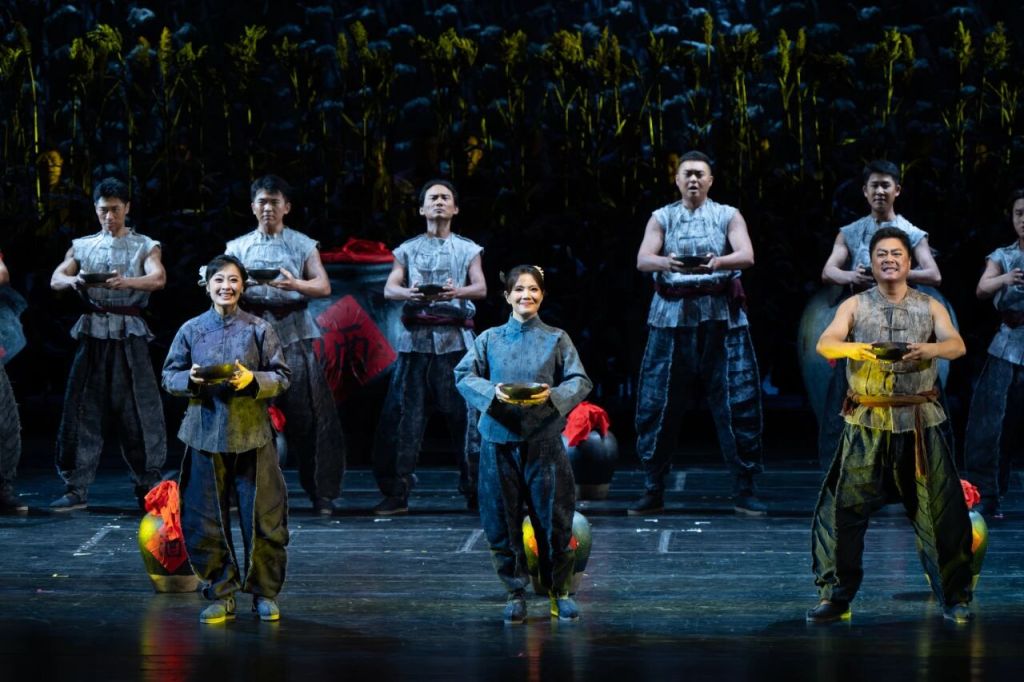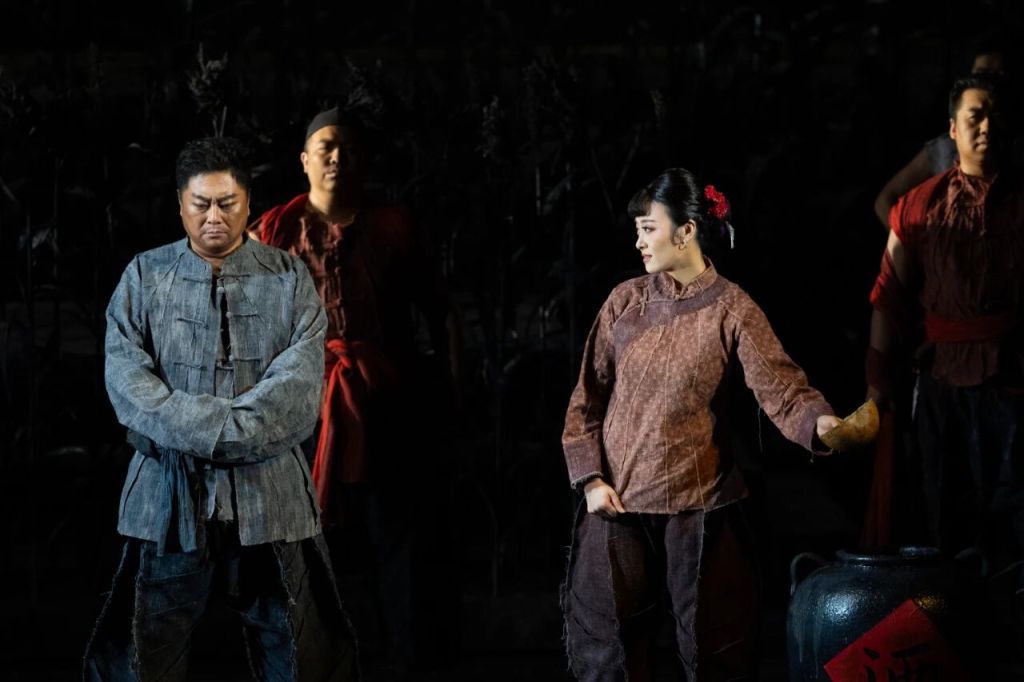 2009年,国家大剧院制作的第一部现实主义题材歌剧《山村女教师》,便是在女主人公杨彩虹殉职后加了一段极具现代风格的女声合唱,意在升华。此番《红高粱》第六场,女二号凤仙和男二号罗汉等惨遭鬼子毒手后,合唱团同样有一段类似于圣咏的合唱。