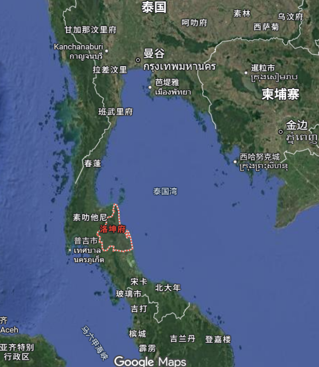 现代泰国洛坤府的位置。府(Changwat)是现代泰国的省级行政区,华人习惯称府。