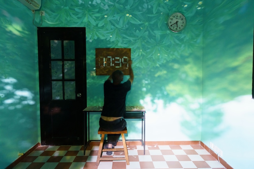 年鉴工作委员会委员、中山大学新闻传播学院副教授郑梓煜以《当代影像艺术中的时间复刻与身体劳作》为题,分享艺术家黎朗在中山大学心理研究中心的驻地创作:在夏至这天把一间咨询室变作暗箱,屋外景致随早午晚光线变化投射入屋内,在13小时33分钟的最长白昼里,艺术家每分钟手动更新一次墙上纸做的“钟表”数字。他联系黎朗较早前书写父亲生命的30219天的作品,认为“身体劳作”作为一种空间展演与具身化的时间刻度,在AI技术风潮正盛的语境中,强化了肉身经验与生命感知,使身体成为抵抗技术巨浪与机器强权的最后堡垒。