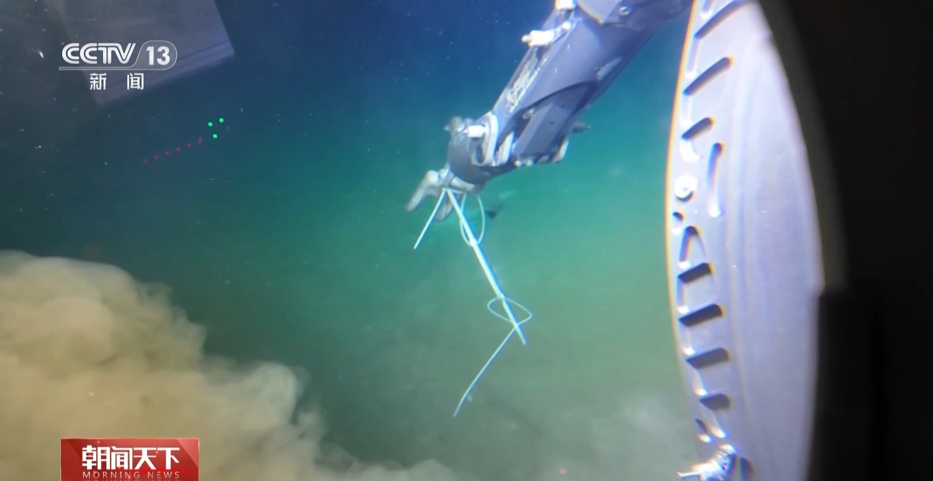 “蛟龙”号首潜副驾驶 赵晟娅:在离水面大概100米左右,我们就可以通过多波束和向上的摄像机观察母船位置,结合二次抛载控制潜水器上浮速度,在船尾上进行定点回收,母船不用根据出水位置找潜器,这是针对北极的作业模式创新。