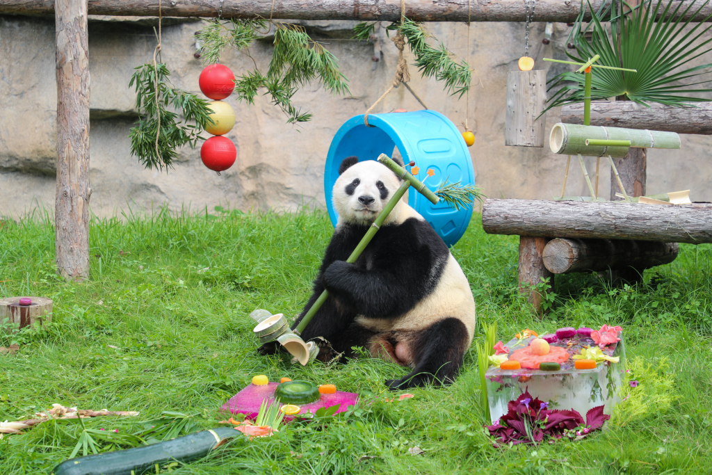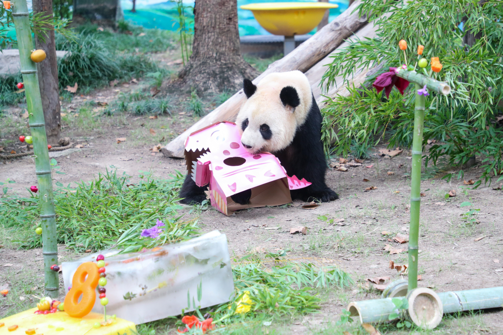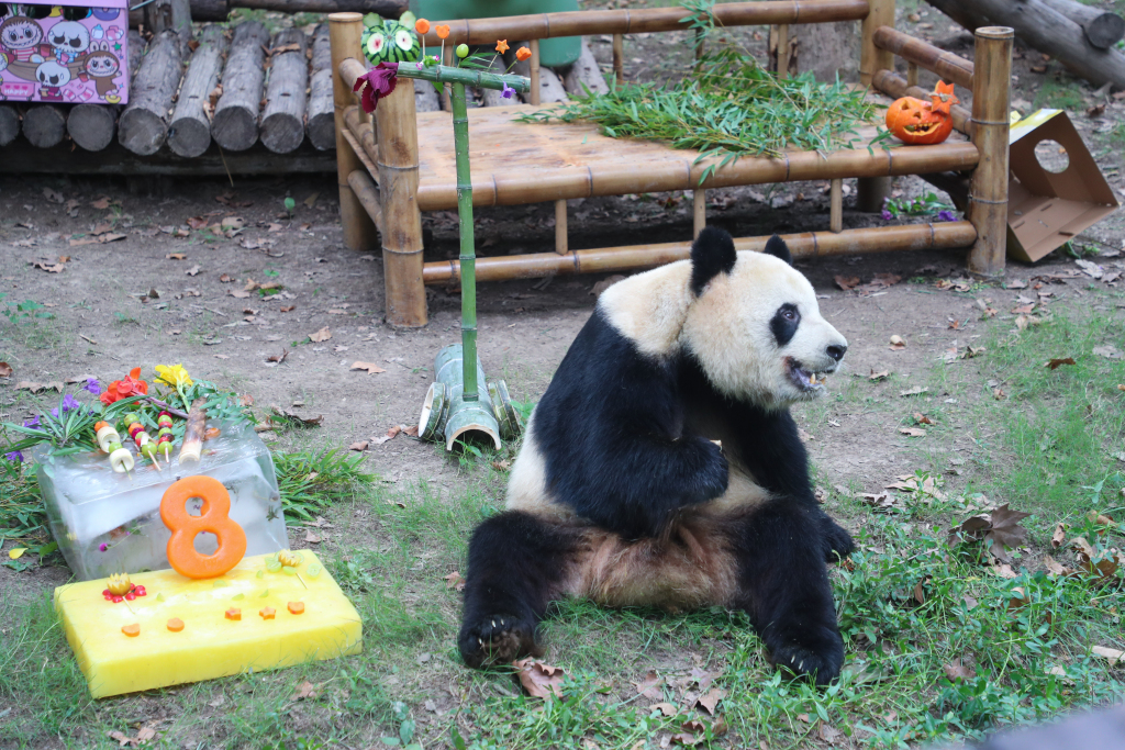 10月4日,上海野生动物园大熊猫馆举办了一场国宝集体庆生活动。 本文图片均为 上海野生动物园 图