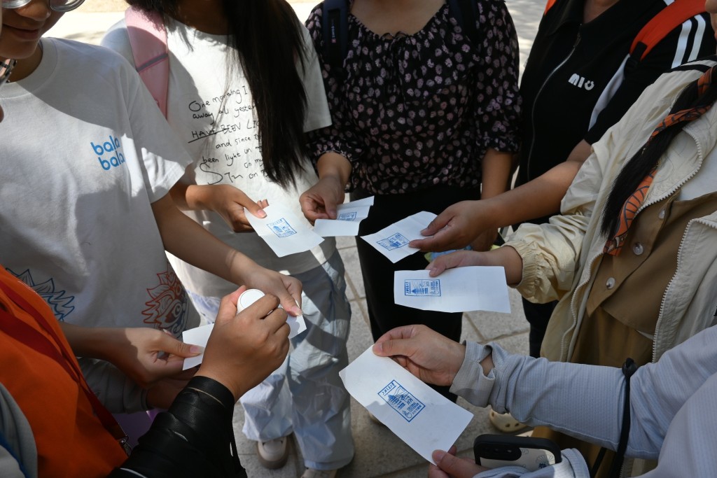 同学们为游客留下专属集邮纪念章