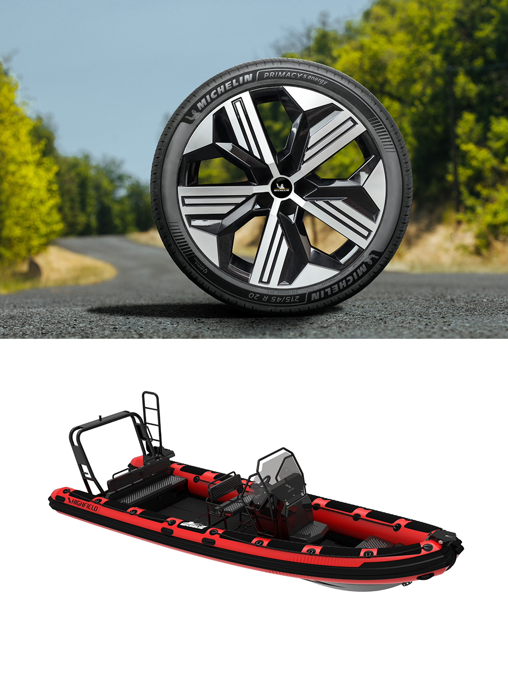 米其林浩悦5 Energy轮胎将在第八届进博会上亚洲首发(上)采用米其林FCG复合涂层材料的刚性充气艇将首次在华展出(下)受访者供图