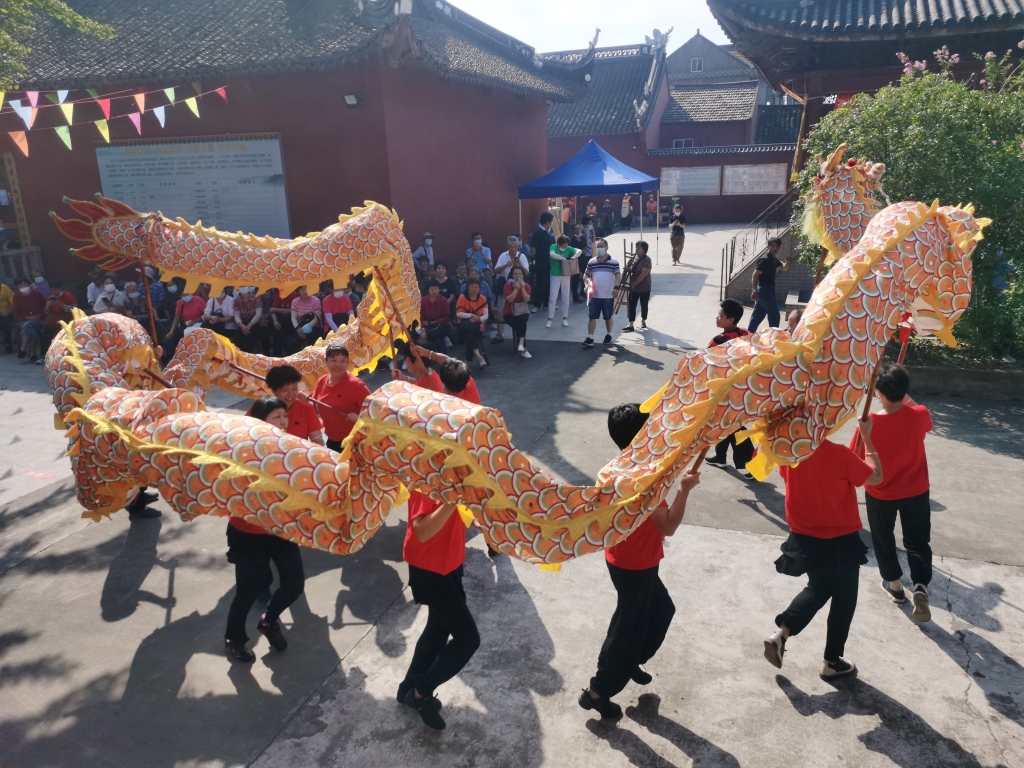 近年来,在非物质文化遗产综合保护传承与文旅深度融合发展政策的推动下,柘林上真道院中秋庙会在活动形式、内容上积极创新,不仅以正一派道教传统科仪(中秋祈福法会)重构了祈福文化空间,同时还在为期三天的中秋庙会场域内设置了非遗展演和文艺表演空间,依托中秋庙会这一聚合性文化空间和场景性功能平台,将奉贤滚灯(2008年国家级非遗项目)、上海道教音乐(2008年国家级非遗项目)、绕龙灯(2011年国家级非遗项目)、打莲湘(2009年市级非遗项目)、腰鼓(2013年市级非遗项目)等内容充分融汇于中秋庙会,实现了多种非遗文化元素的集中展示、综合保护与“活态”传承。此外,上真道院中秋庙会期间还形成了临时性的商贸集市空间,在道院周边区域商贾云集,街道两旁摊贩如织,香客、游客络绎不绝,在一定程度上促进了当地社会经济的发展。