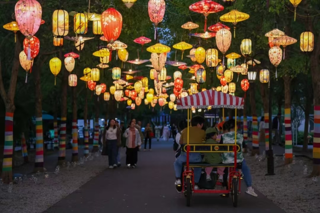 近年来,朱泾花灯会在非物质文化遗产保护政策和文旅深度融合发展机制的推动下得到了充分保护传承和创新发展,成为上海市非物质文化遗产与旅游深度融合发展的优秀实践案例;尤其是依托“朱泾花灯文化旅游节”“朱泾花灯文旅嘉年华”等文旅品牌为载体,拓展成为包含花灯游园会、花灯制作大赛、花灯舞展演、书画展览、美食集市、特产展销、篝火露营音乐会等丰富内容的综合性文旅活动,吸引了更多市民、游客前来体验,也使这一中秋月夜的花灯游赏民俗得到了更广泛的传承普及和创新发展。例如,今年中秋国庆假期举办的“中国·朱泾花灯文化旅游嘉年华”,不仅展示了龙灯、鱼灯、兔子灯、莲花灯等不同形态的传统花灯,还设置了多个互动体验版块,让现场民众有机会亲身体验制作朱泾花灯、提灯游园,深度参与这场非遗文化盛宴。