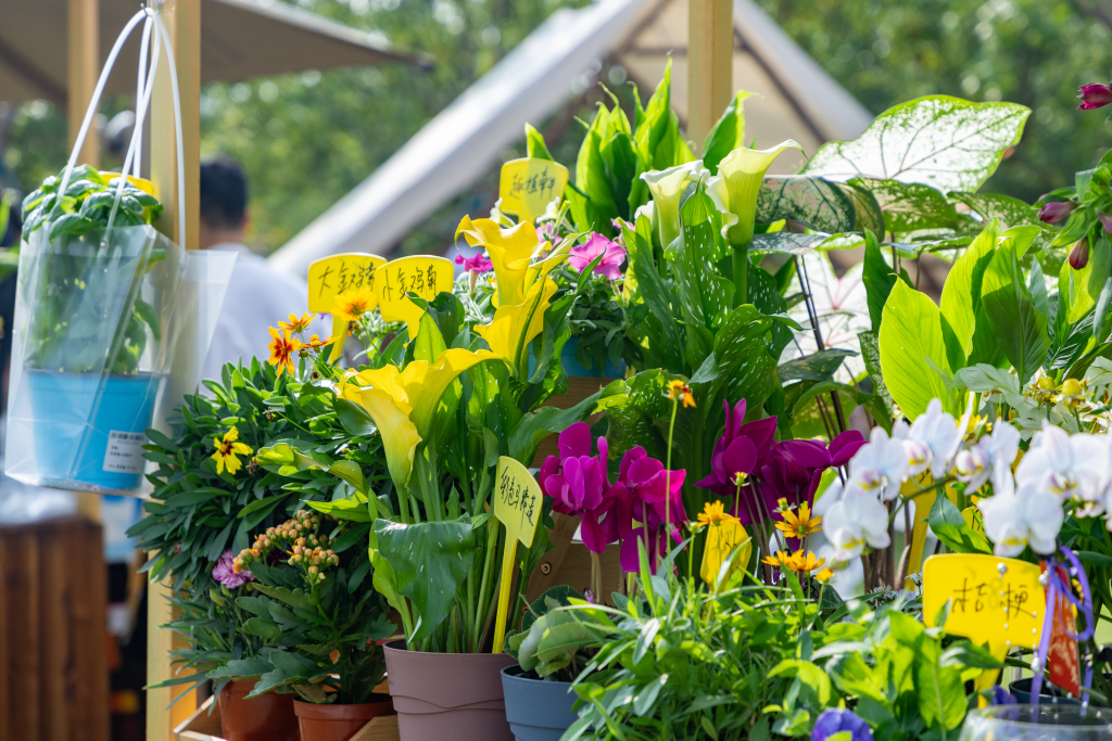 从花海走进帐篷区草坪,便进入了热闹的市集,这里有花卉园艺、上海味道、非遗文创和潮流美食,等市民游客前来体验。由上海市花卉协会组织的花卉集市正在世界花艺园·花艺馆内及周边热情营业,20+独立店铺,花卉、绿植、器物、美学,为你展示更有趣的生活方式。