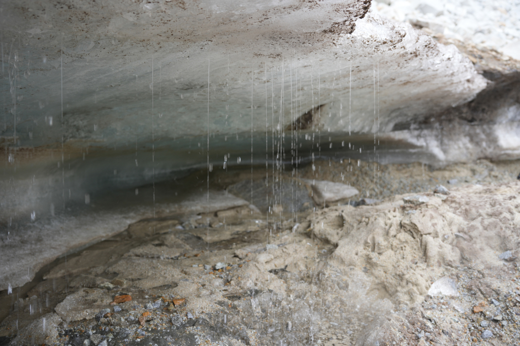 一场冰雹之后,冰川观景台上留下一层豌豆般大的冰雹