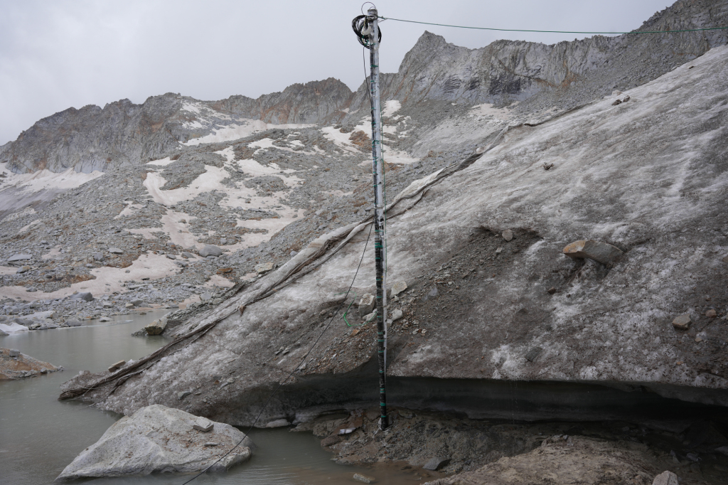 “相比去年,应该退化了三五米。地温传感器是去年从冰面上扎下去的,现在全都露在外面了。”2025年8月2日,四川省达古冰川管理局科研处副处长张伏告诉澎湃新闻(www.thepaper.cn),地温传感器所在的位置也是目前整个冰川区域内面积最大的达古17号冰川。他解释道,虽然形势严峻,但雪山景观并不会消失。