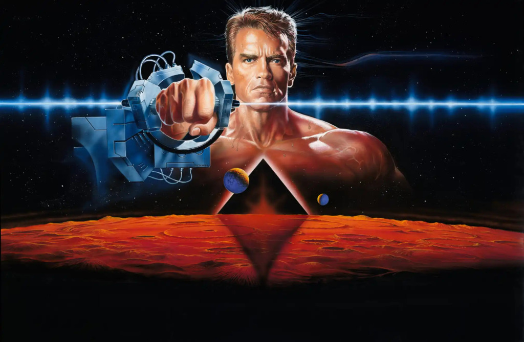 回到上世纪八九十年代,继《野蛮人柯南》之后,他又连续为阿诺德·施瓦辛格主演的多部电影设计海报,为这位前健美明星的好莱坞成名之路,出力不少。在他为《女王神剑》《过关斩将》《全面回忆》《终结者2》和《真实的谎言》设计的海报上,施瓦辛格均明确占据C位,而且都被画得精气十足,宛若天神下凡。