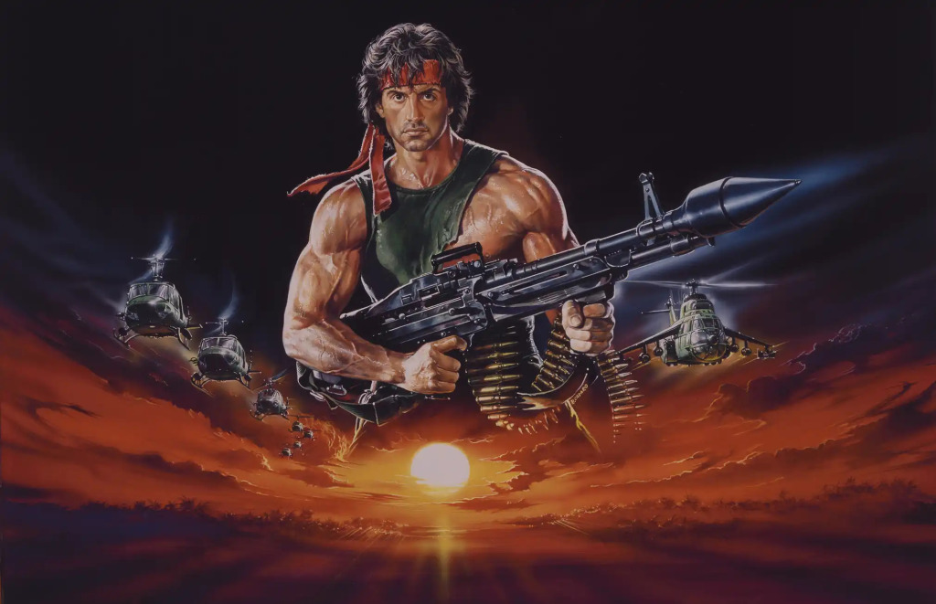 同样,另一位好莱坞动作片巨星史泰龙的影片也喜欢找卡萨罗操刀海报,如《第一滴血》《飞越巅峰》《破茧威龙》《绝岭雄风》等。