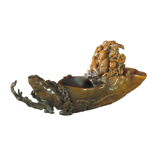 图12 仙人乘槎犀角杯 扬州博物馆藏