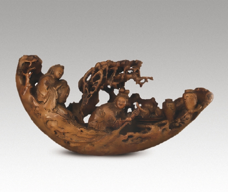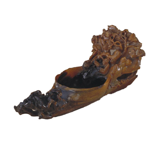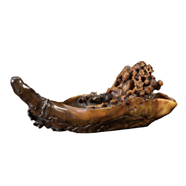 图7 犀角镂雕花木人物槎杯 故宫博物院藏
