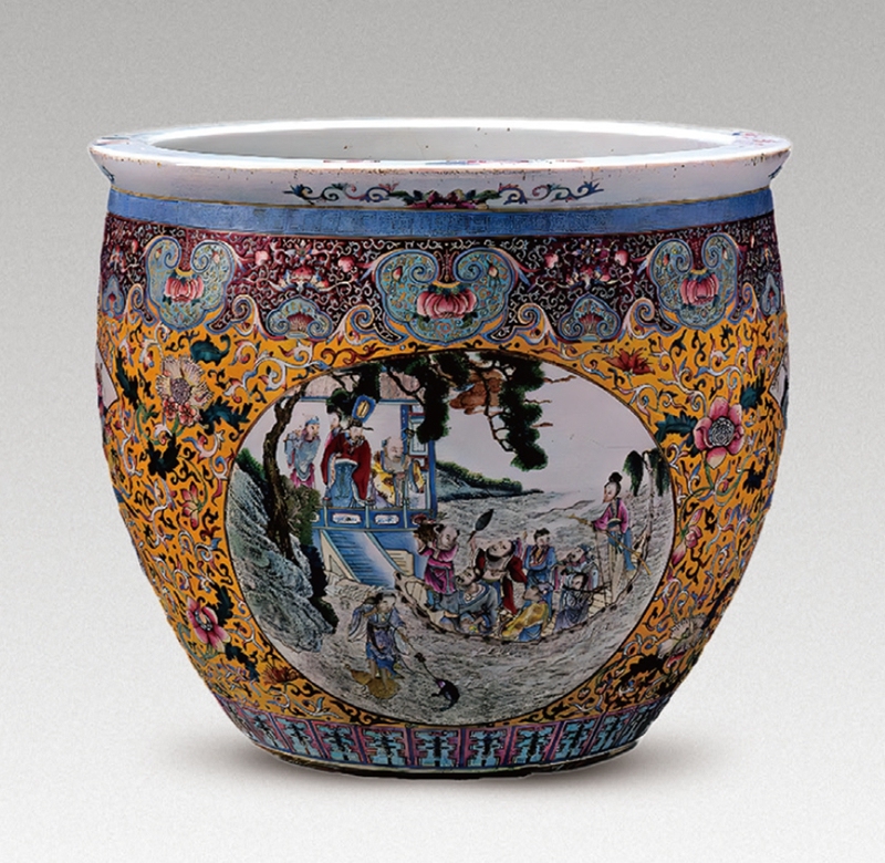 图15 粉彩开光人物瓷缸 宜宾市博物院藏