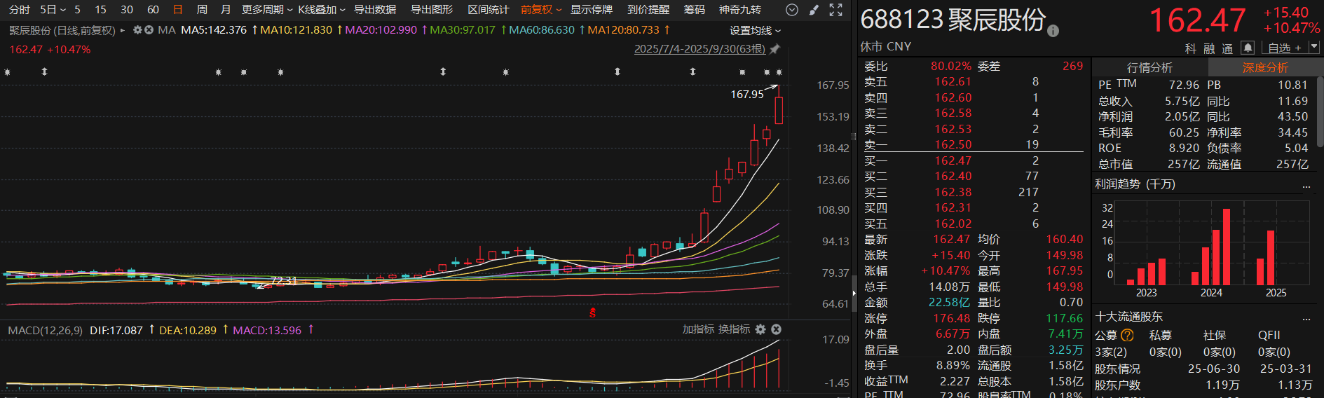大族数控同样具备PCB概念,公司自4月低点迄今股价累计最大涨幅达289.68%。大族数控9月30日披露投资者关系活动记录表,公司业务模式创新发展,通过布局PCB生产关键工序及多品类产品为客户提供一站式解决方案,实现了应用场景、技术、供应链、设备与材料、产品、工序、客户的多维协同,并创造性地发挥协同优势,放大客户、供应链及产业链伙伴、公司整体价值,不断提升公司产品的技术能力和客户服务能力,助力下游客户提升综合竞争力,更好的满足不断演进的PCB先进制造需求。